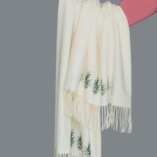 Cashmere Feel Luxury Scarf Handprinted with Pine Cones
