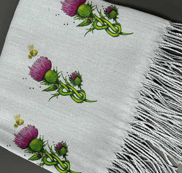 Cashmere Feel Luxury Scarf Handprinted with Celtic Thistles