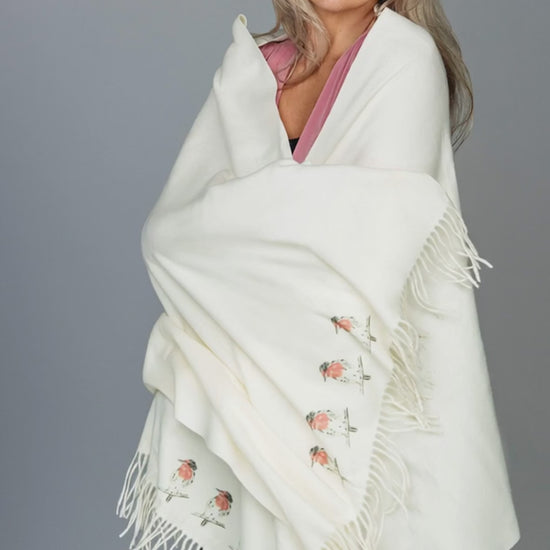 Cashmere Feel Luxury Scarf Handprinted with Robins