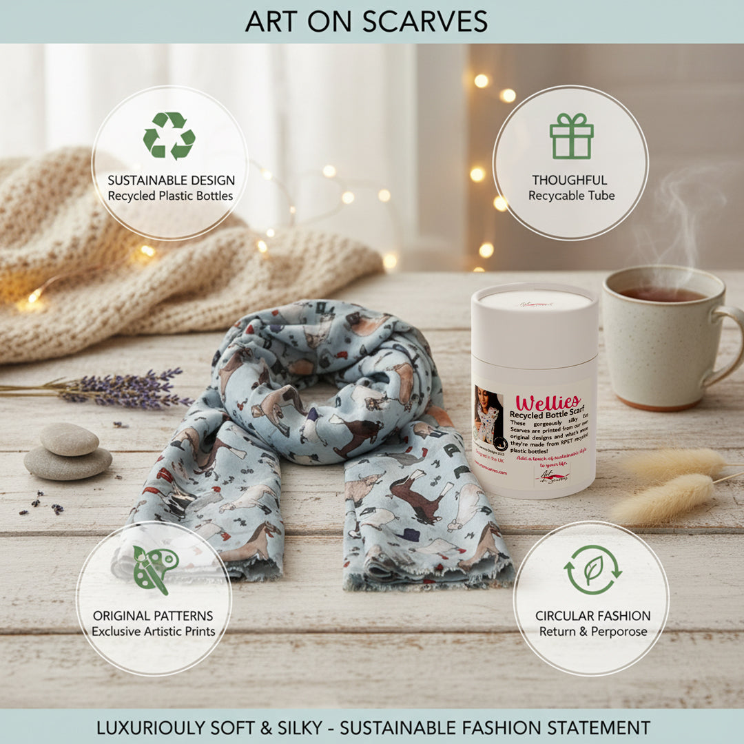 These incredibly soft and silky scarves are made from Recycled PET Plastic Bottles. Fully sustainable and recyclable they are uniquely printed with our own original designs.