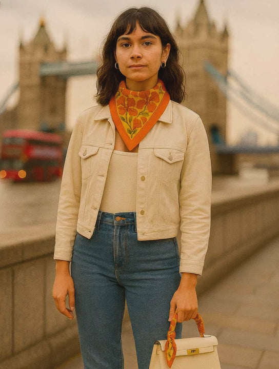 These luxurious accessories are perfect for dressing up any outfit and come in a classic neck scarf: 65 x 65 cm for a more fitted look and a neat Twilly accessory for your bag, hair, or as an elegant neck tie.